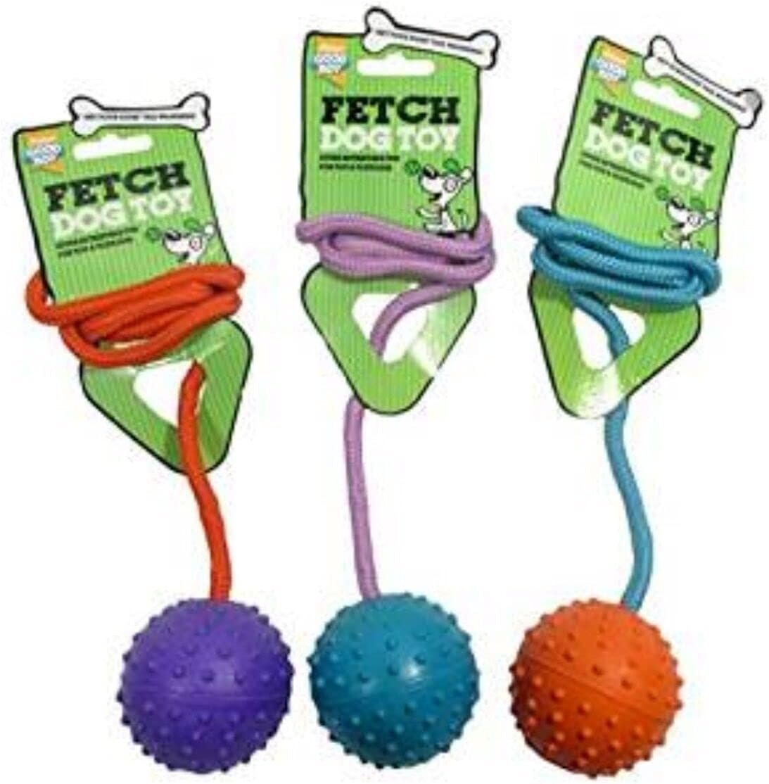 3 PACK GOODBOY FETCH DOG TOY BOUNCY PIMPLED RUBBER BALL ON ROPE THROW 08986