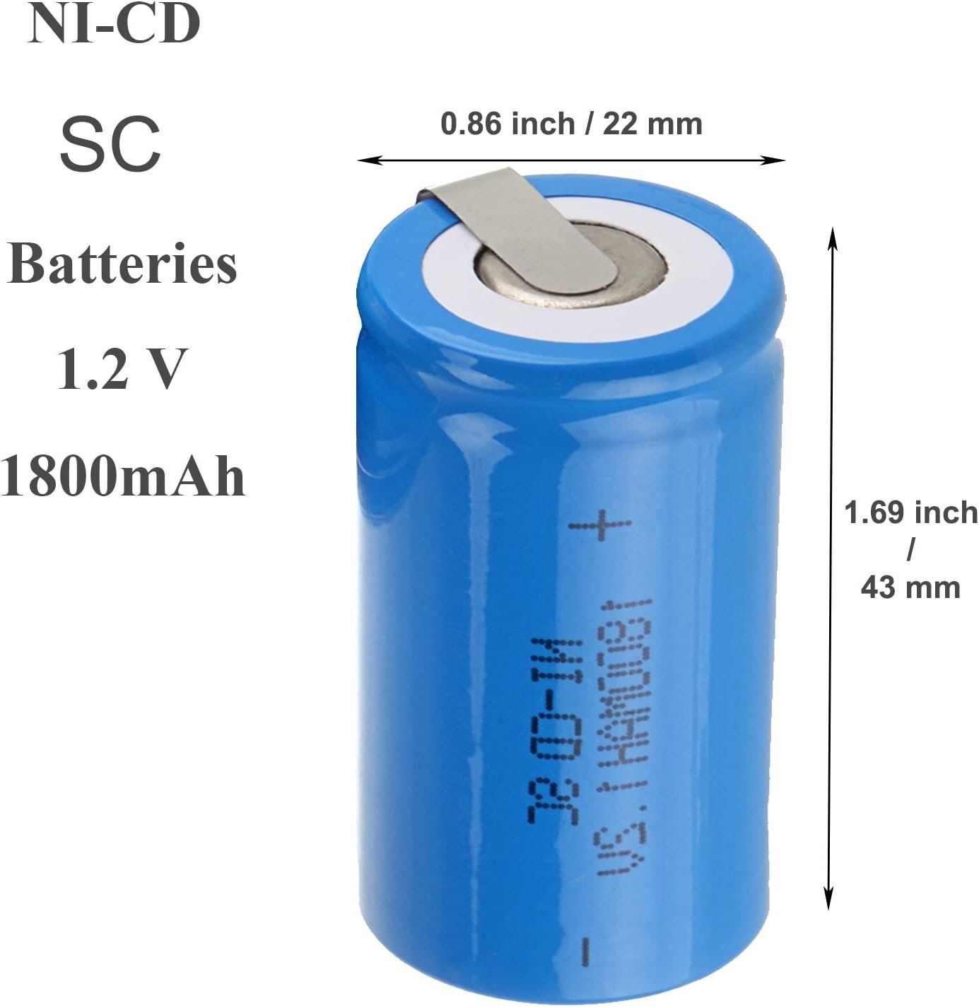ANMAS POWER 12PCS Blue Sub C NiCd Batteries SC 1.2V 1800mAh