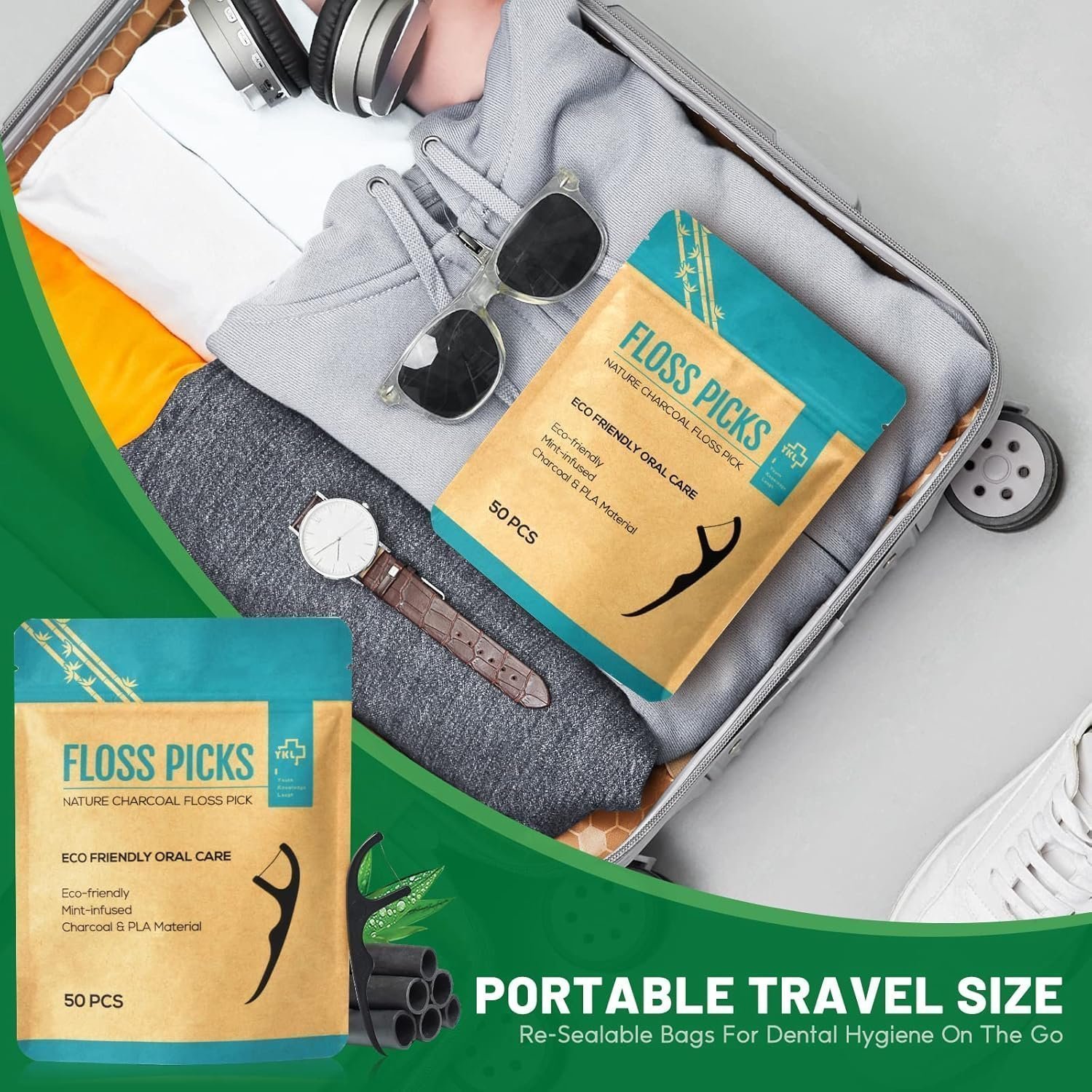 • ECO FRIENDLY – YKL floss picks are made mainly from Charcoal & corn-starch and packaged in craft paper packaging