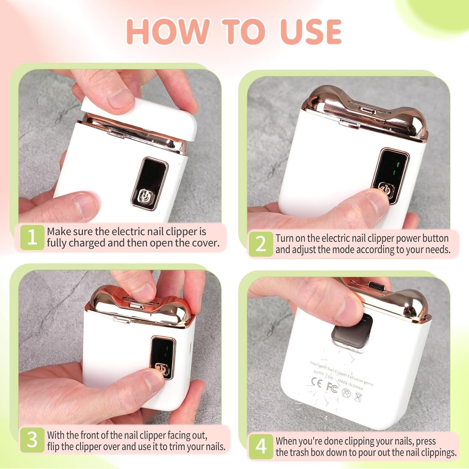 - Innovative Blade Design: This Electric Nail Clipper boasts an advanced blade system, meticulously engineered to deliver unparalleled precision and safety. Hidden behind curved grooves, the ultra-sharp blades are carefully shielded, ensuring that every trim is performed with utmost care. Protection against accidental injuries but also enhances comfort, particularly when handling different skin or delicate nails. Providing a gentle and comfortable experience for all users, including infants and those with limited dexterity.