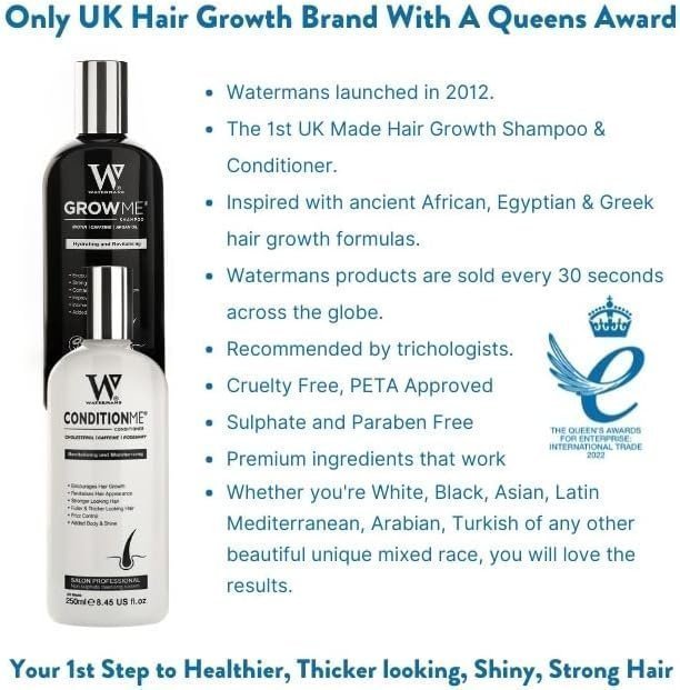 - Formulated with hair growth stimulating proteins to address issues like excessive hair fall due to breakage, menopause hair problems and to enhance your hair’s natural thickness and condition – Watermans is your ultimate solution