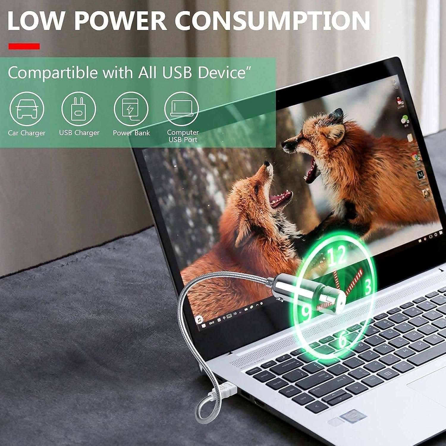 huiheng USB LED Fan, Mini LED Clock Fan with Flexible Gooseneck, Personal Silent Laptop Fan USB Powered for Home Office