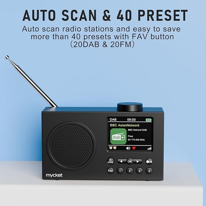 - DAB/DAB+ & FM digital radio: The portable DAB+ radio from Mycket offers you razor-sharp and clear audio quality, so you can enjoy your favourite radio stations anywhere. DAB offers improved quality of digital radio and allows you to access a range of digital radio stations. On the clear colour LCD screen, you know exactly what you are hearing.