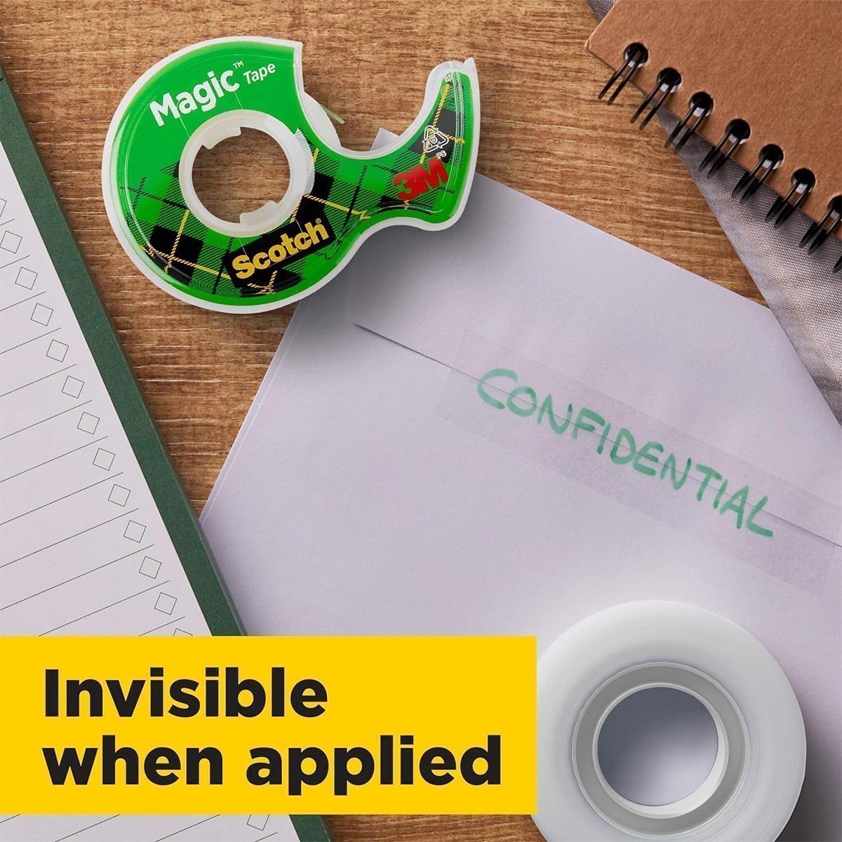 - ORIGINAL MATTE FINISH, INVISIBLE TAPE: Scotch Magic Tape is frosty on the roll, but disappears when applied on most paper