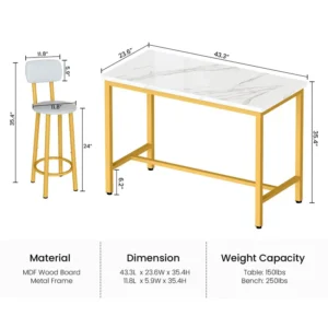 Transform your small dining area into a functional and stylish space with the VINGLI 3-Piece Bistro Dining Set. This contemporary set is expertly crafted to maximize utility without compromising aesthetics, making it perfect for apartments, small kitchens, or dining rooms. The set includes a compact table with a sturdy metal frame and a sleek wooden top, complemented by two ergonomically designed chairs that ensure comfortable seating.