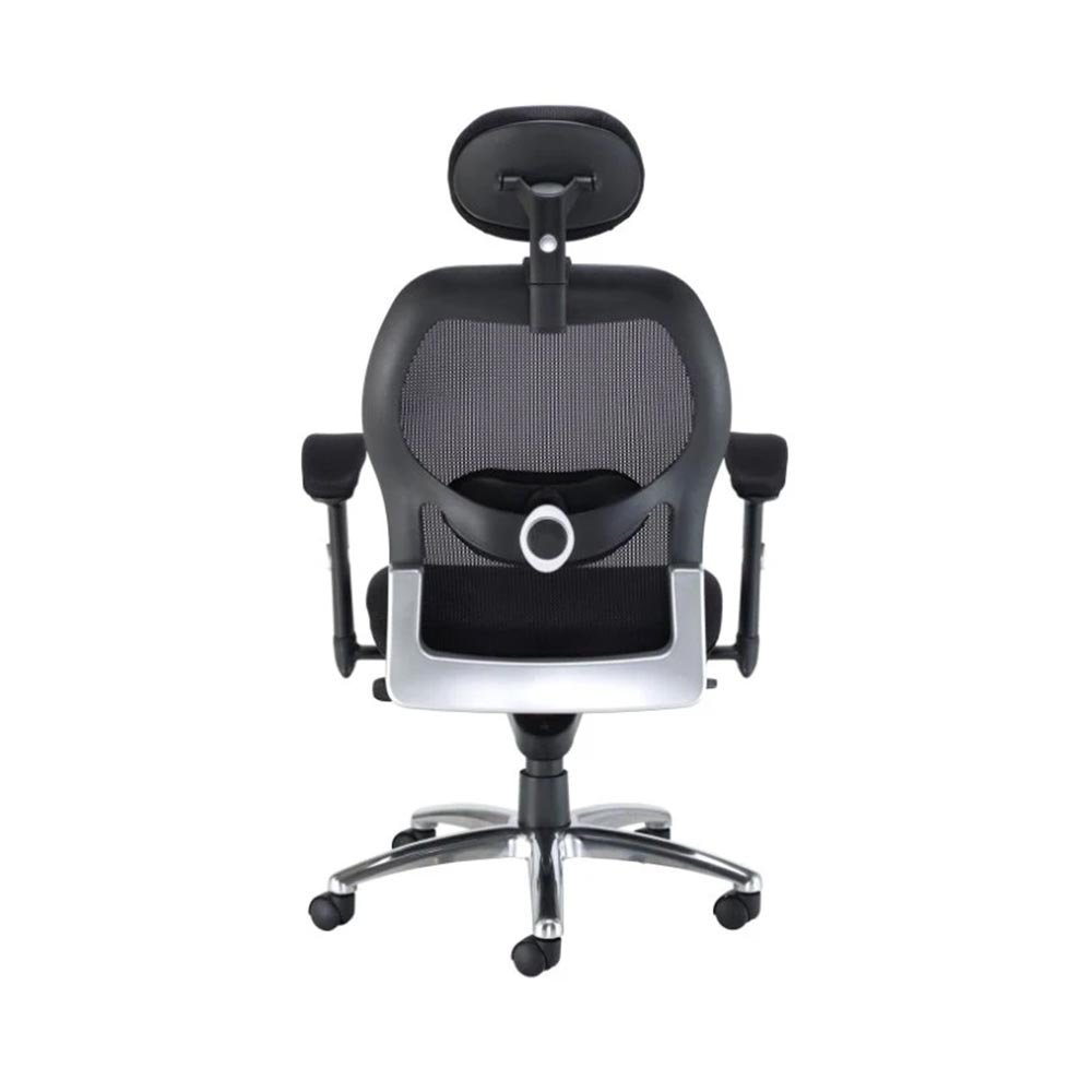 The Vision 24hr Mesh Office Chair offers unparalleled comfort and support. Its high back design with plush padding and headrest ensures an ergonomic seating experience. The chair features a chrome base, fixed arms, and a lumbar-supporting curved back. Ideal for long hours, the synchro-tilt mechanism with torsion control allows users to adjust their seating position for optimal comfort. Rated for up to 130 kg and up to 8 hours of use, this chair is perfect for a productive workday. Available in sleek black with next day delivery and a 2-year guarantee.